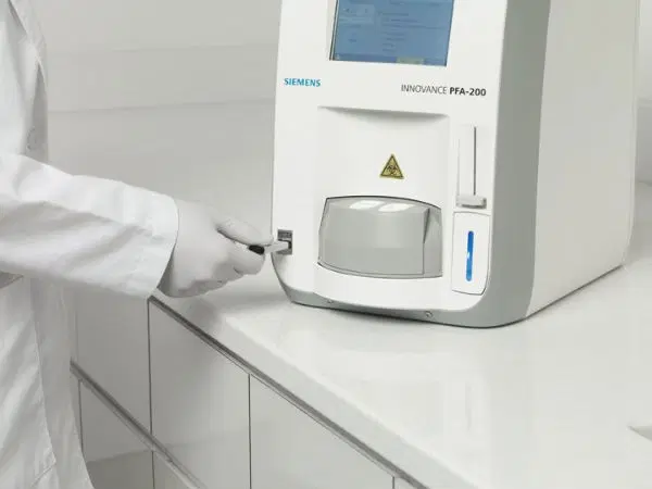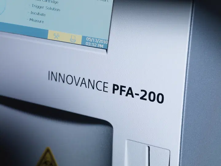 O Sistema INNOVANCE® PFA-200* fornece a avaliação sistemática de disfunções plaquetárias hereditárias, adquiridas ou por droga induzidas. O equipamento avalia a hemostasia primária e ajuda na detecção rápida da disfunção plaquetária. Por meio da tecnologia de fluxo, o sistema fornece um ambiente hemodinâmico realista para a determinação da hemostasia primária.